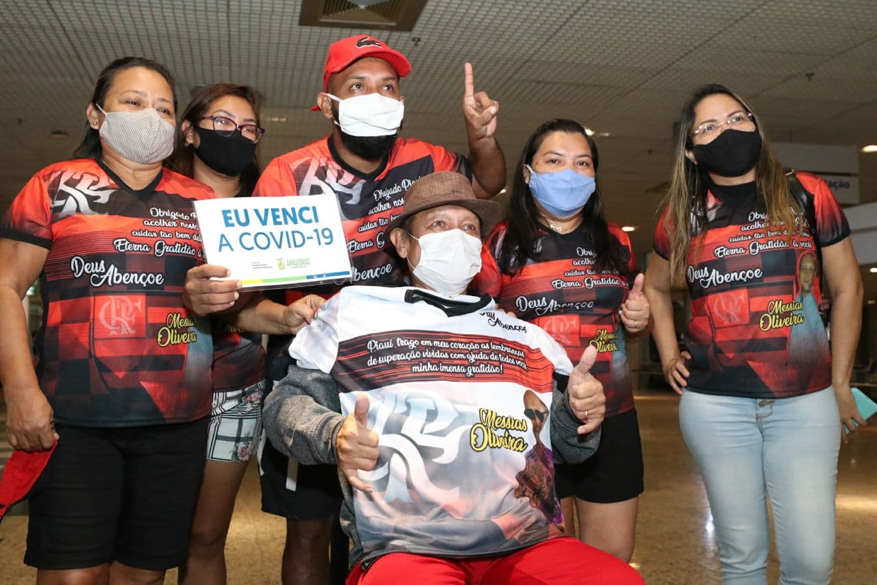 Totalmente recuperado, o primeiro paciente transferido do Amazonas para atendimento contra a Covid-19 em outro estado retornou a Manaus em grande estilo na noite desta quarta-feira (24/02). Messias Oliveira, de 62 anos, estava internado no Piauí desde o dia 16 de janeiro. Ele foi recebido com homenagem de “torcedores” no saguão do Aeroporto Internacional Eduardo Gomes, zona oeste.