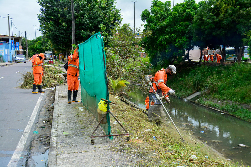 Nesta semana, além das orlas, a Semulsp intensificou as ações em igarapés. Na rua 13 de Maio, na Colônia Oliveira Machado, zona Sul, equipes atuam na capina, limpeza do córrego, poda de árvore e recolhimento de lixo.