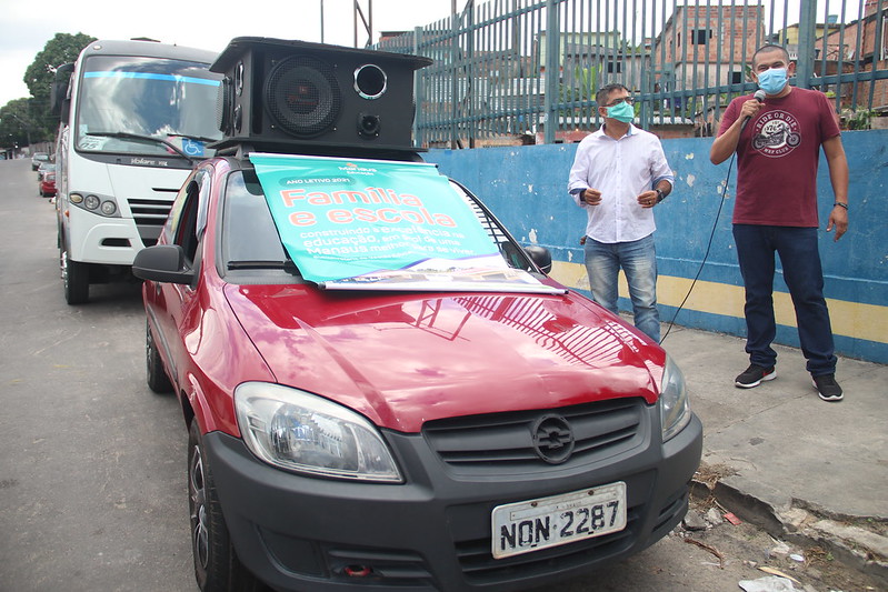 Umas das ferramentas é a utilização de um carro de som para chamar estudantes para irem até a escola buscar livros didáticos e o caderno de apoio, que os auxiliam nas aulas remotas