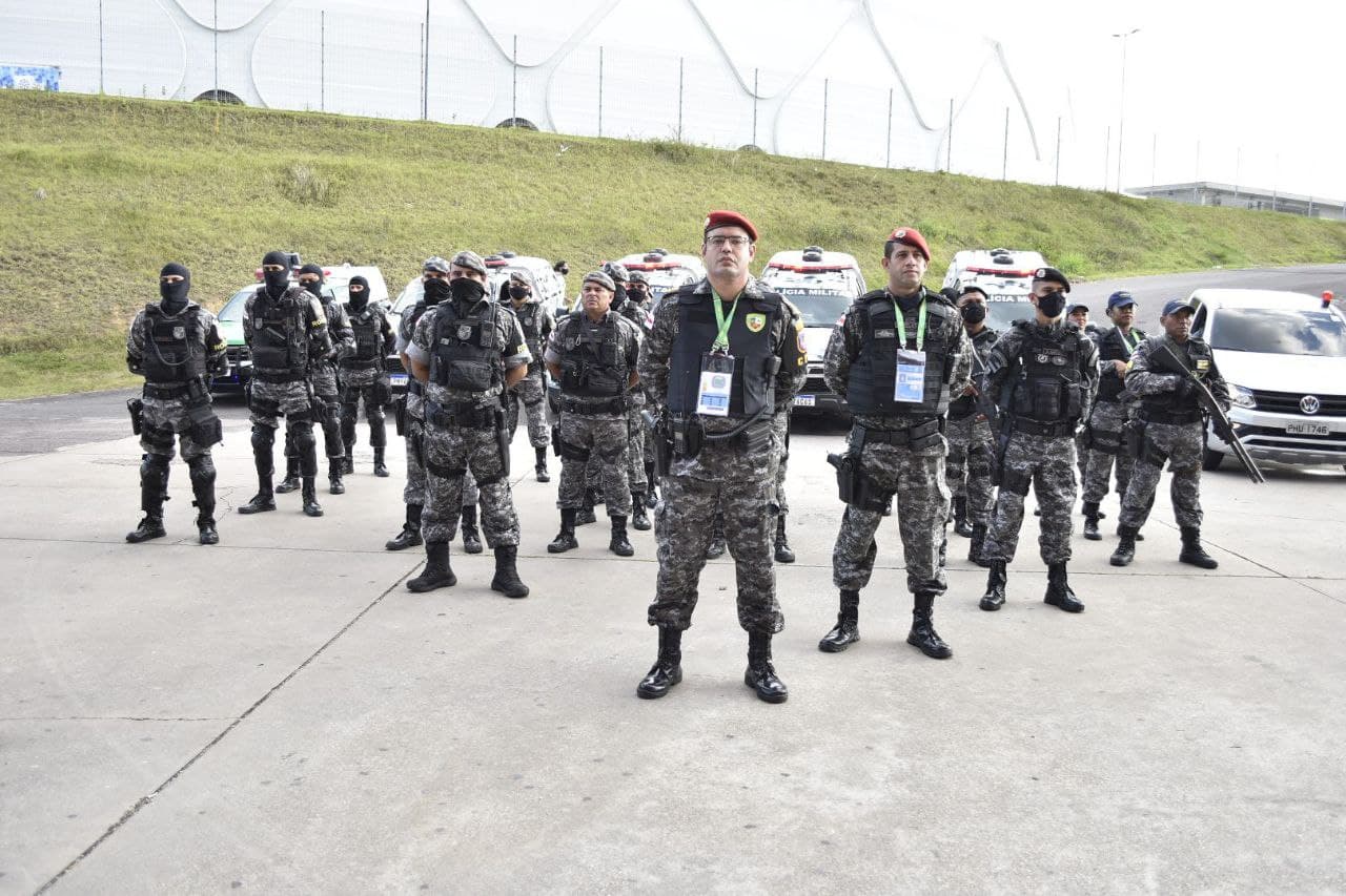 São 419 agentes entre policiais militares, policiais civis, bombeiros militares e agentes do Núcleo Especializado em Operação de Trânsito (Neot), do Departamento de Trânsito do Amazonas (Detran-AM), garantindo a segurança das pessoas que irão ao estádio.