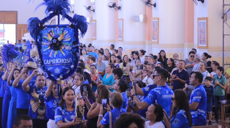 Read MoreManifestação religiosa começou procissão dos integrantes do bumbá, que levaram o estandarte azul e branco e demais itens, até o